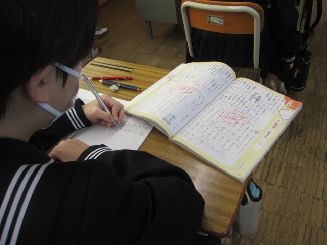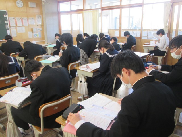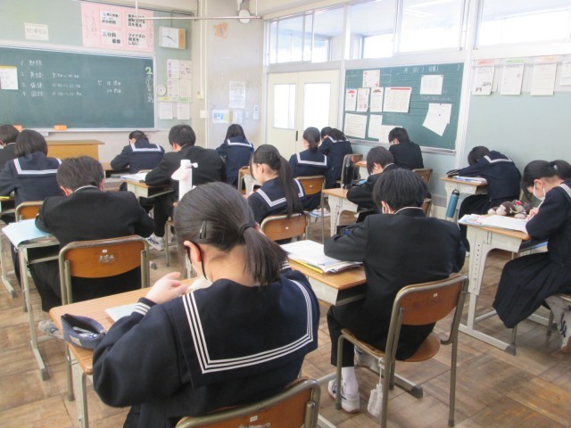 期末テスト 公開日 2026/02/19 更新日 2026/02/19 お知らせ テスト直前、勉強している様子です。頭脳フル回転で頑張っています!テストは疲れますね。しっかり食べて、臨んでください。 +7