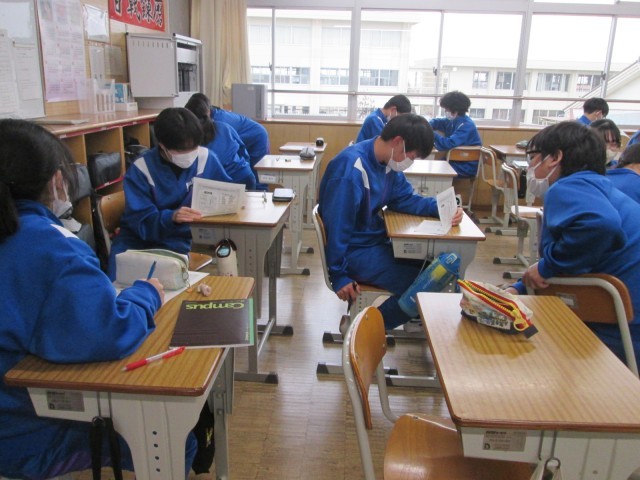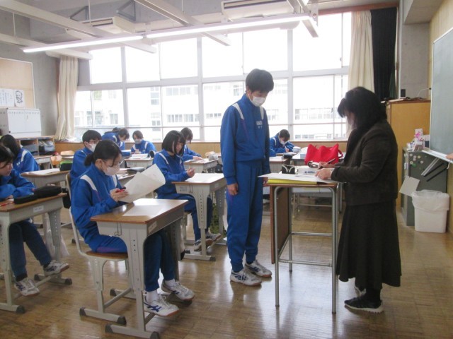 授業風景 公開日 2026/02/24 更新日 2026/02/24 お知らせ 国語・数学・家庭科・音楽の授業の様子です。期末テストが返されている教科もありました。テストは「後始末」が肝心です。間違えた問題は、もう一度ノートに書き写してやり直しをしましょう。 +6