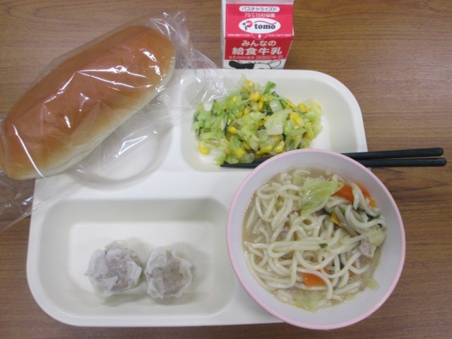 今日の給食は煮込み味噌ラーメン 公開日 2026/02/25 更新日 2026/02/25 お知らせ 今日の献立は、煮込み味噌ラーメン・水菜サラダ・ポークシュウマイ・ミルクパン・牛乳でした。ラーメンは大人気のメニューですね。食缶が空になりました。水菜サラダは、レモン味のドレッシングでとてもさわやかでした。今日も完食です。ごちそうさまでした!
