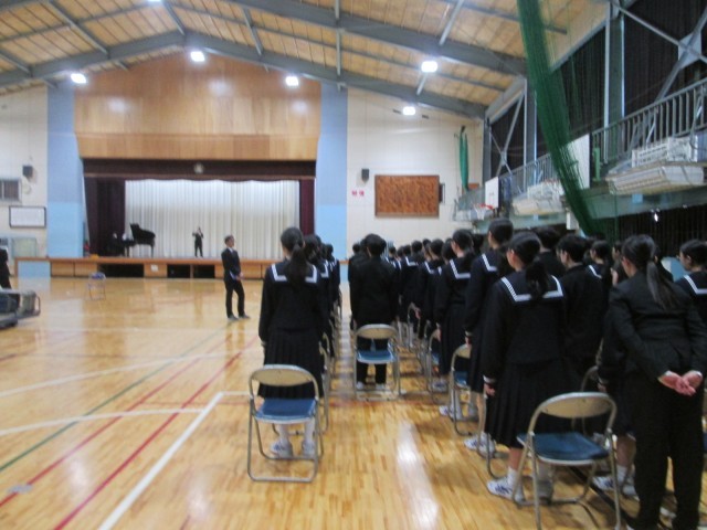 卒業式練習1・2年生 公開日 2026/03/02 更新日 2026/03/02 お知らせ 1・2年生も、卒業式練習を始めました。まずは所作から練習し、国歌や校歌の練習もしました。感動の卒業式にするために、しっかり声を出して、心を込めて歌いましょう。合唱コンクールの時の校歌のように、会場に響き渡る歌声を期待しています。 +2