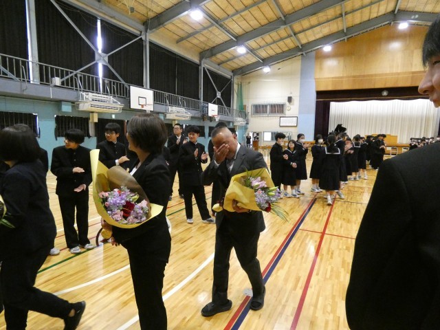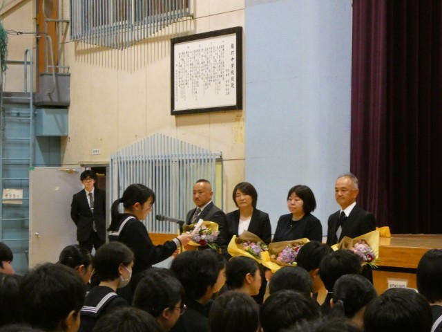 退任式では、退任する先生の名前が呼ばれるたびに、悲鳴のような声が上がりました。