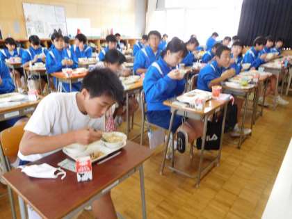 授業が終わり緊張も緩み、給食の時間は笑顔が美しいです。