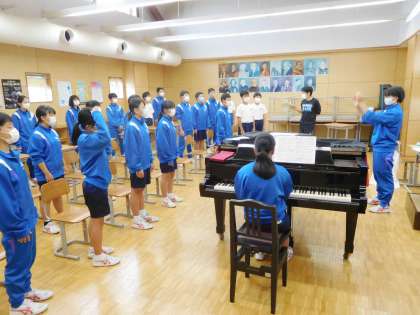 1年生 音楽室を使えました。 広く、そしてピアノも使えて、効果的です。