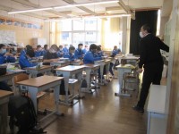 学校の門の前の横断歩道、多くの車の方が止まってくれます。