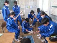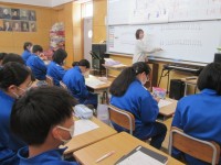技術・社会・家庭科・英語の授業の様子です。英語では、綿打中の先生について、英語で...