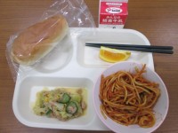 今日の献立は、スパゲティナポリタン・ツナサラダ・オレンジ・ミルクパン・牛乳でした...