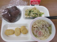今日の献立は、煮込み醤油ラーメン・チキンナゲット・辛みごま和え・ココアパン・牛乳...
