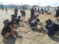 体育祭を安全に行うため、全校で除草作業を行いました。暑い中でしたが、それぞれの担...