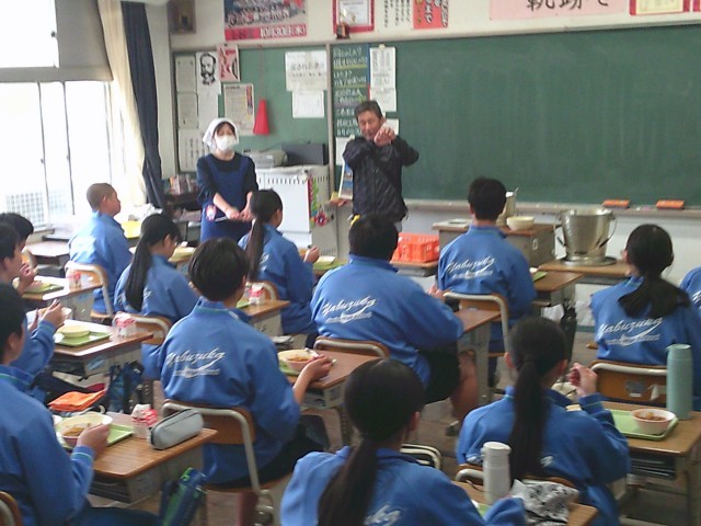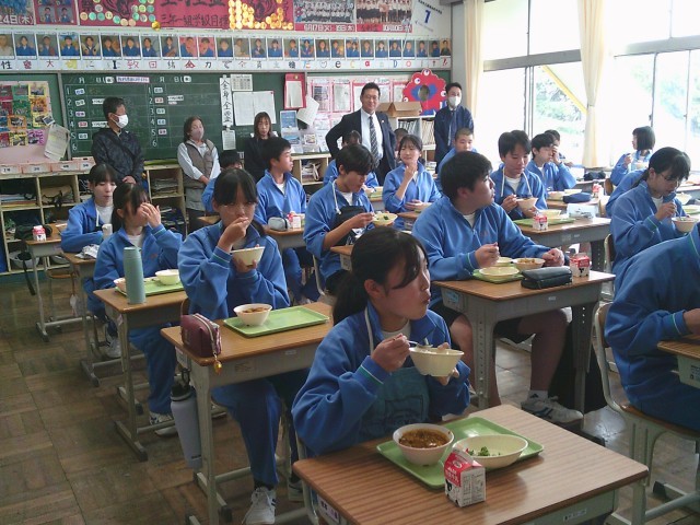 地元給食部会・太田市教委・米作り農家さん・JA職員の6名の方々が来校し、3年生の給食の様子を参観してくださいました。