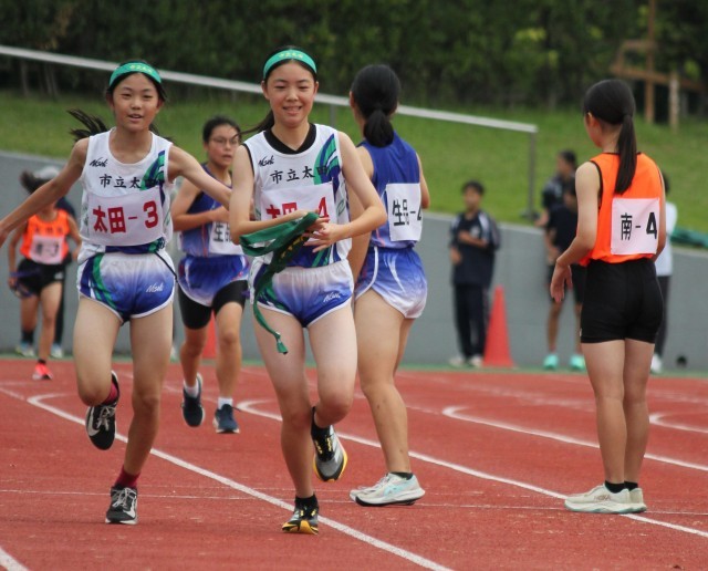 太田中女子Bチームのたすきリレーの様子です。