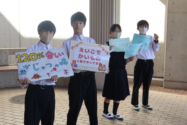学校説明、NZ報告、技術教室、国語教室、英語教室、数学教室、吹奏楽部発表を