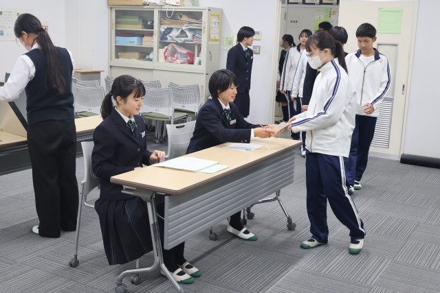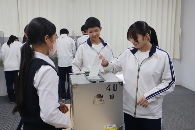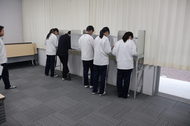 厳粛な雰囲気の中、投票用紙を入れていました。