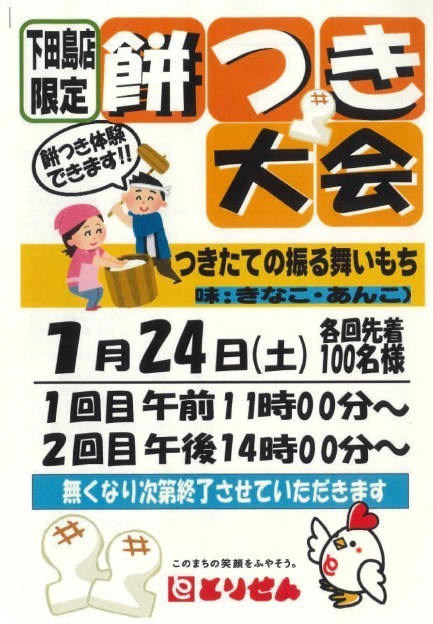 1月24日(土)にとりせん下田島店にて、餅つき大会が開催されました。