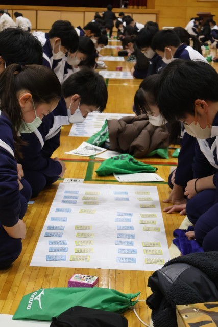 図書文化委員会による企画・運営で実施された『百人一首大会』の様子です。
