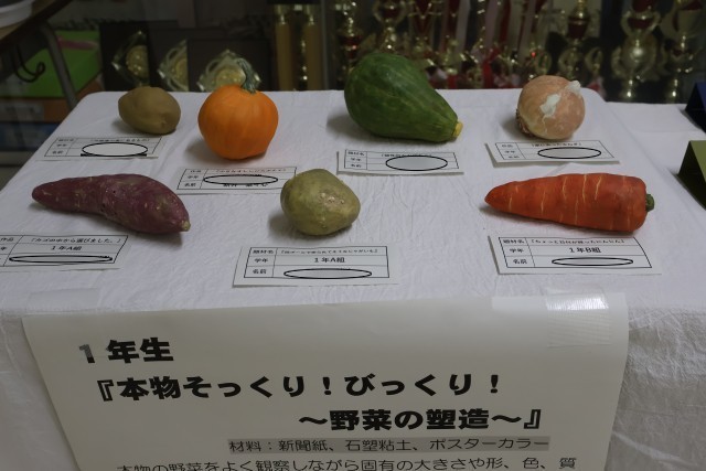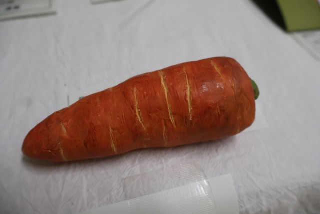 新聞紙や石塑粘土、ポスターカラーを用いて、