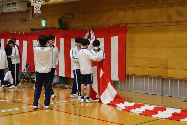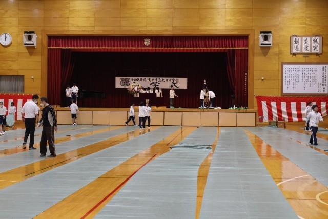 入学式の前日に、2,3年生が教室の清掃をしたり、体育館の式場作りをしたりと、